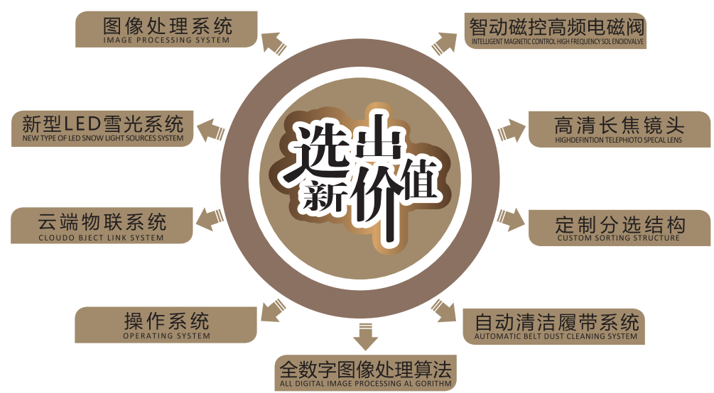 6、全封閉式分選箱設(shè)計(jì),為攝像頭創(chuàng)造無塵工作環(huán)境。解決了長時(shí)間分選因分選箱密封不嚴(yán),導(dǎo)致的攝像頭進(jìn)灰問題
